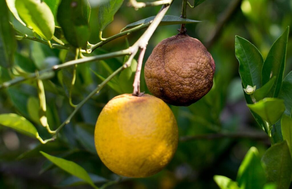 No obstante, resulta totalmente inofensiva para el ser humano, pero afecta gravemente a la apariencia de la fruta, ya que entre sus síntomas está la muerte de ramas y hojas, y manchas oscuras en la fruta que evolucionan hasta la podredumbre de la misma.