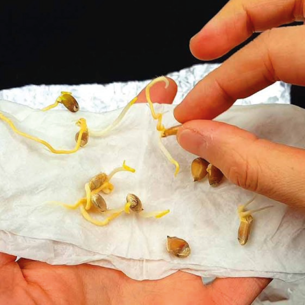 Luego se coloca otra capa de algodón y se repite el paso. Es recomendable humedecer con agua el algodón y luego colocar las semillas. Se presiona nuevamente hacia abajo y se cubre con una capa de algodón húmedo.