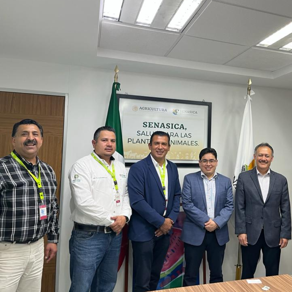 El titular de la Sedarh, José Alfredo Pérez Ortiz, junto a directores de agricultura, ganadería y desarrollo rural, acudieron al Servicio Nacional de Sanidad, Inocuidad y Calidad Agroalimentaria (Senasica), de la Secretaría de Agricultura y Desarrollo Rural (Sader), donde se expusieron las necesidades del campo potosino.