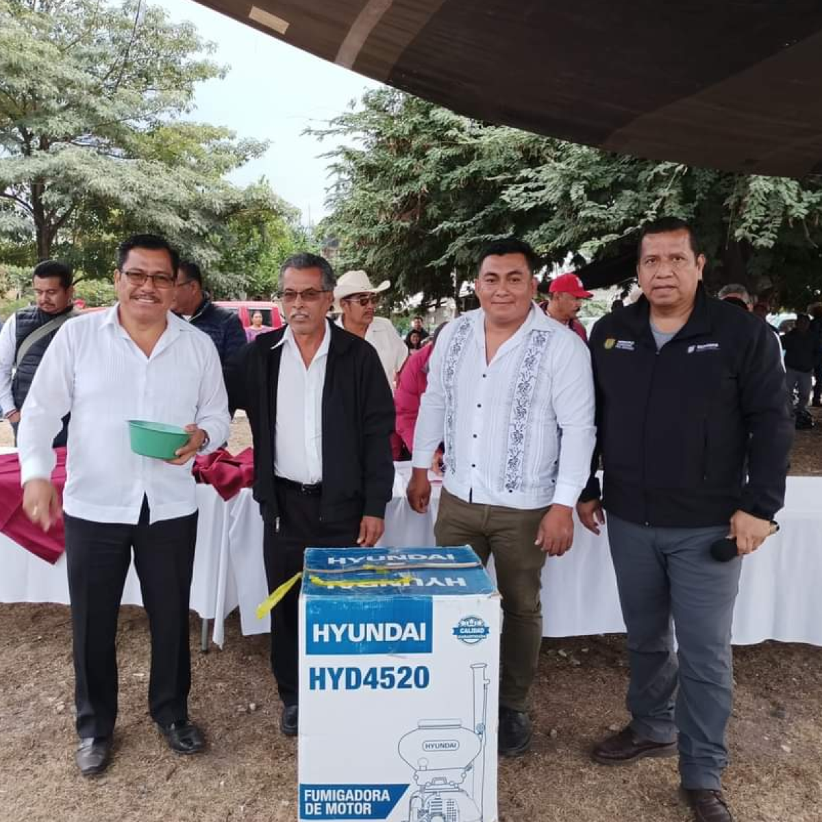 Al término de esta reunión, el diputado local Maleno Rosales procedió a la entrega de ocho herramientas agrícolas, consistentes en cuatro bombas de motor de cuatro tiempos y 4 desbrozadoras, las cuales se rifaron entre los asistentes.