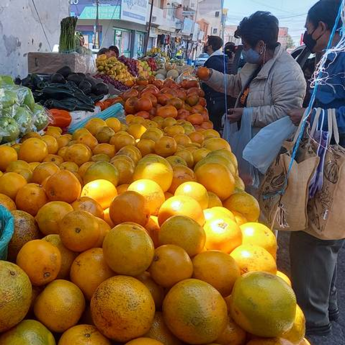 En este tianguis, los productores locales y de comunidades cercanas se instalan en las calles para ofrecer sus cítricos.