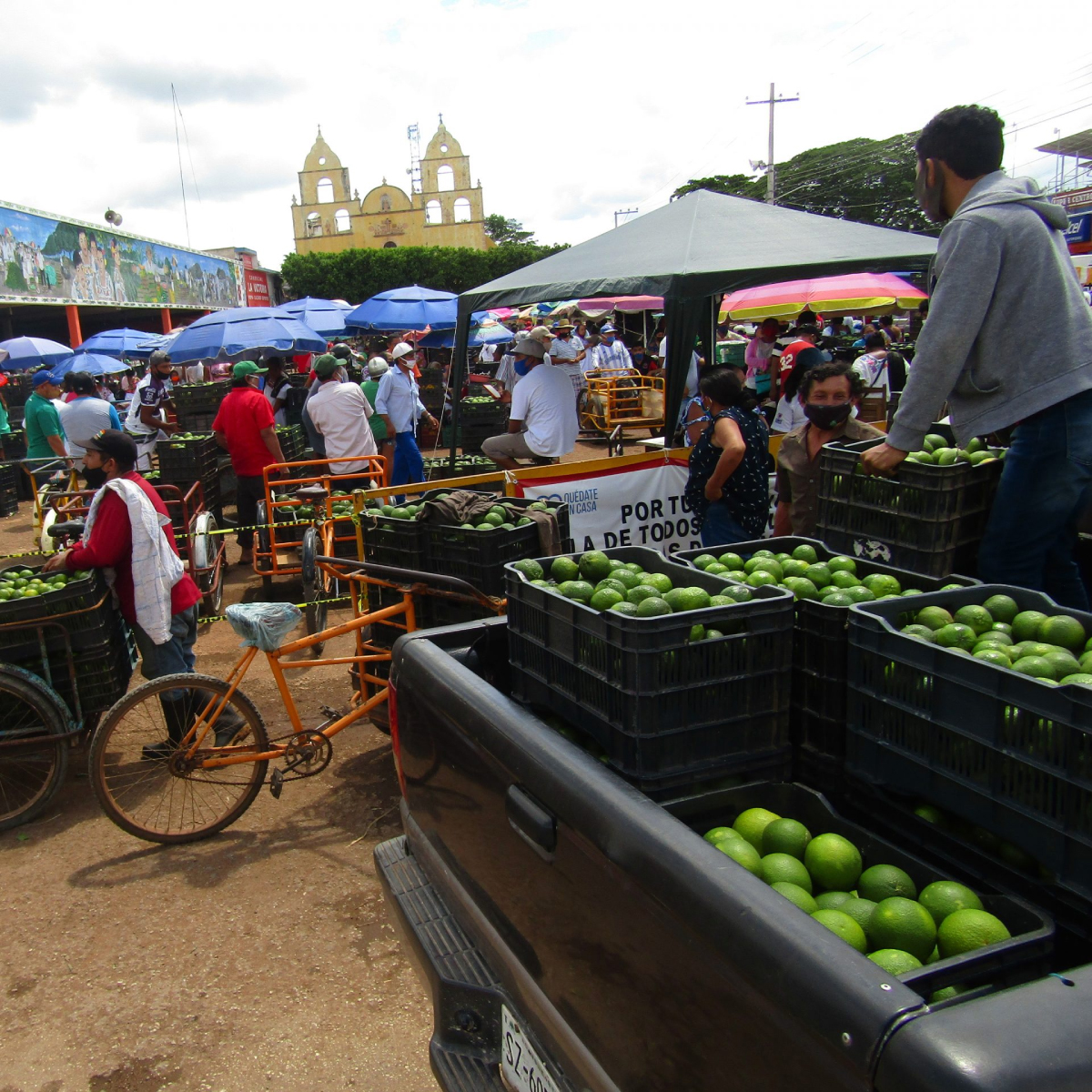 El limón está en floración y las plantas tienen colgados frutos de diversos tamaños, el limón puede dar más de doce cosechas al año, está continuidad de producción hace generar ingresos constantes a los más de cuatro mil productores, quienes a diario llevan producto a vender en la plaza.